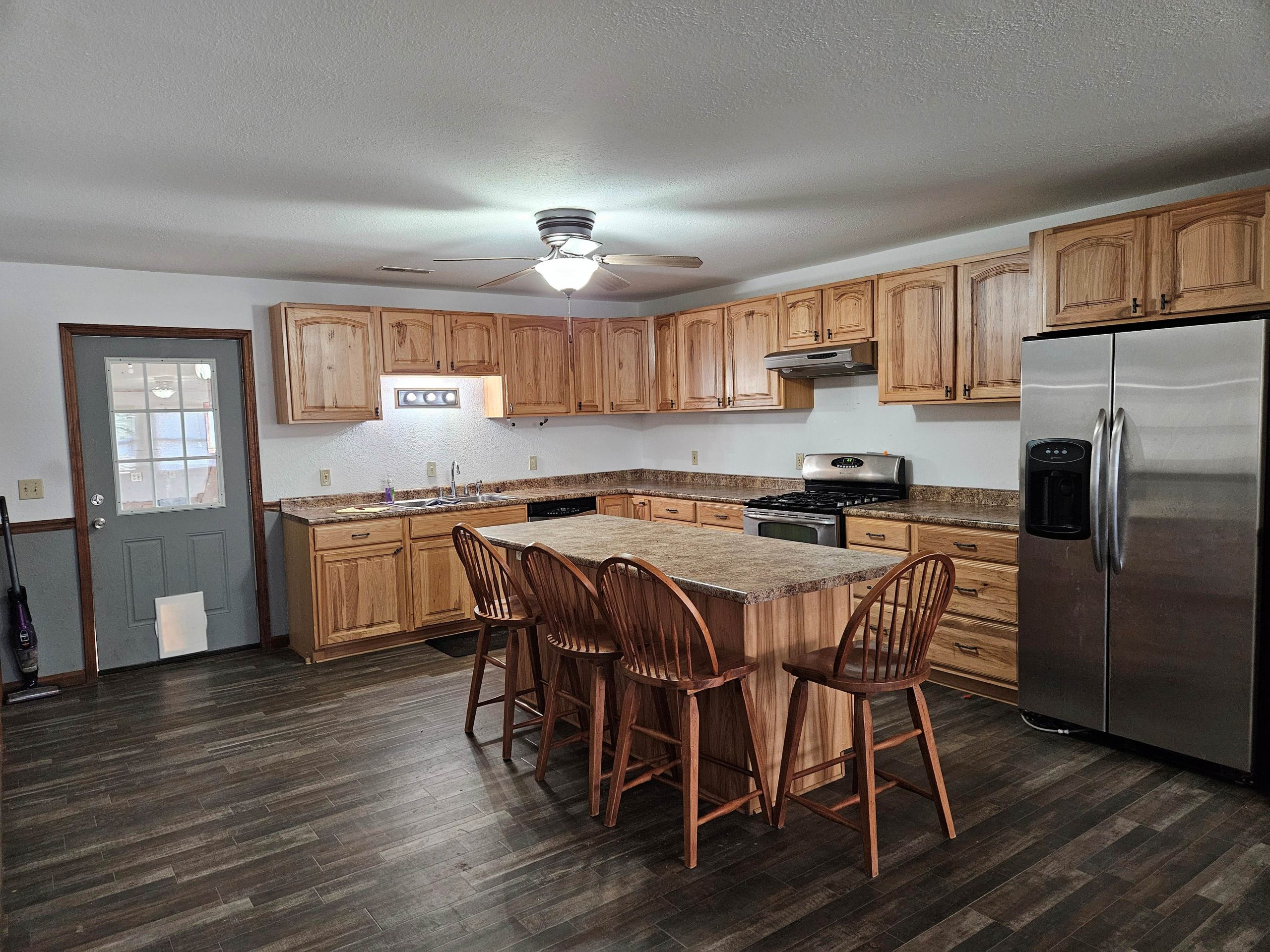 Spacious 3-bedroom, 1-bathroom home with an attached garage. This thoughtfully designed residence features an open-concept living area that flows into a bright kitchen, centered around a generous island with ample seating—perfect for entertaining and everyday family life. The kitchen comes fully equipped with essential appliances: stove, refrigerator, dishwasher, and microwave. Surrounded on all side with a sizeable amount of property, and for added convenience, 24-hour maintenance is available. Please contact our office about possible availability!